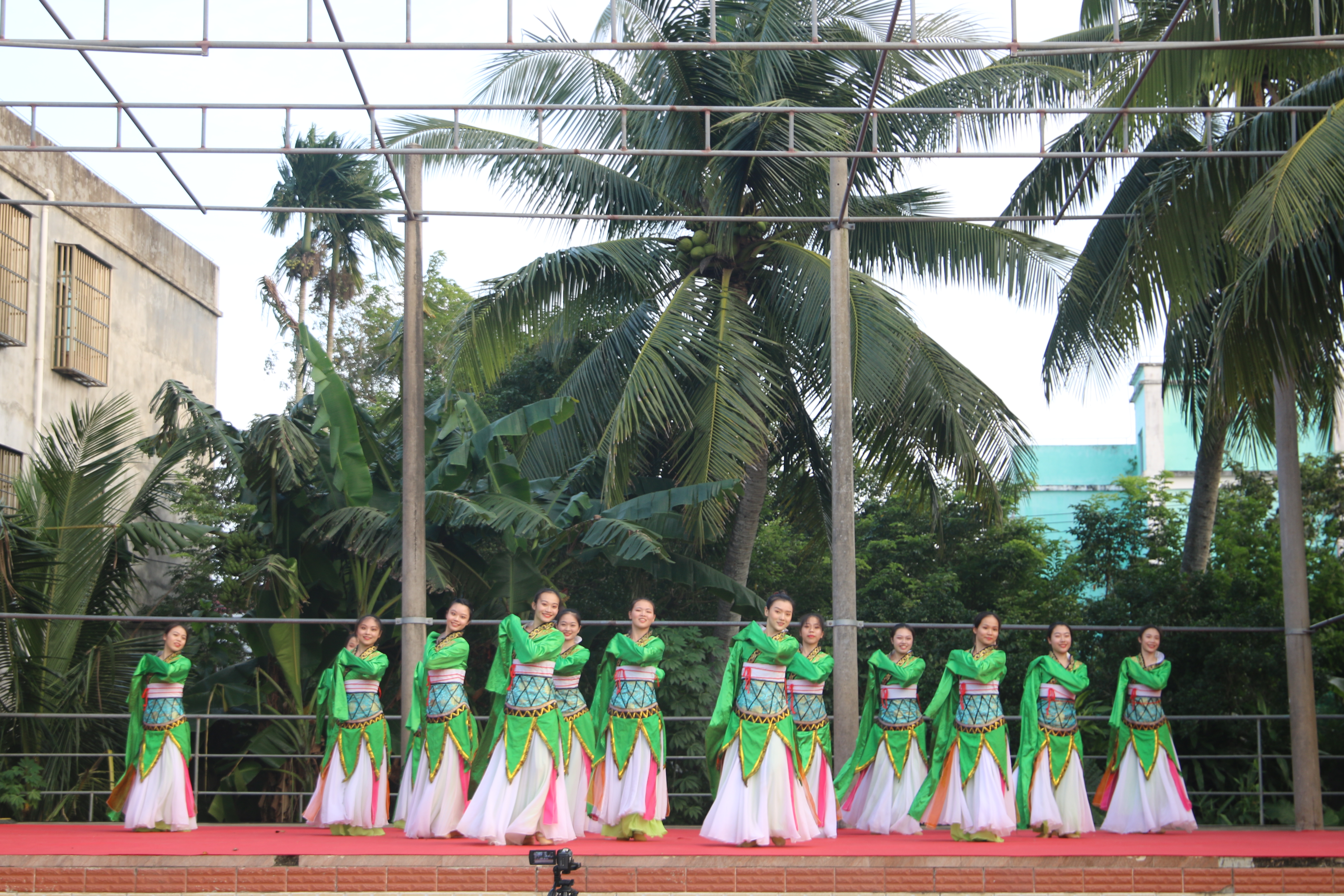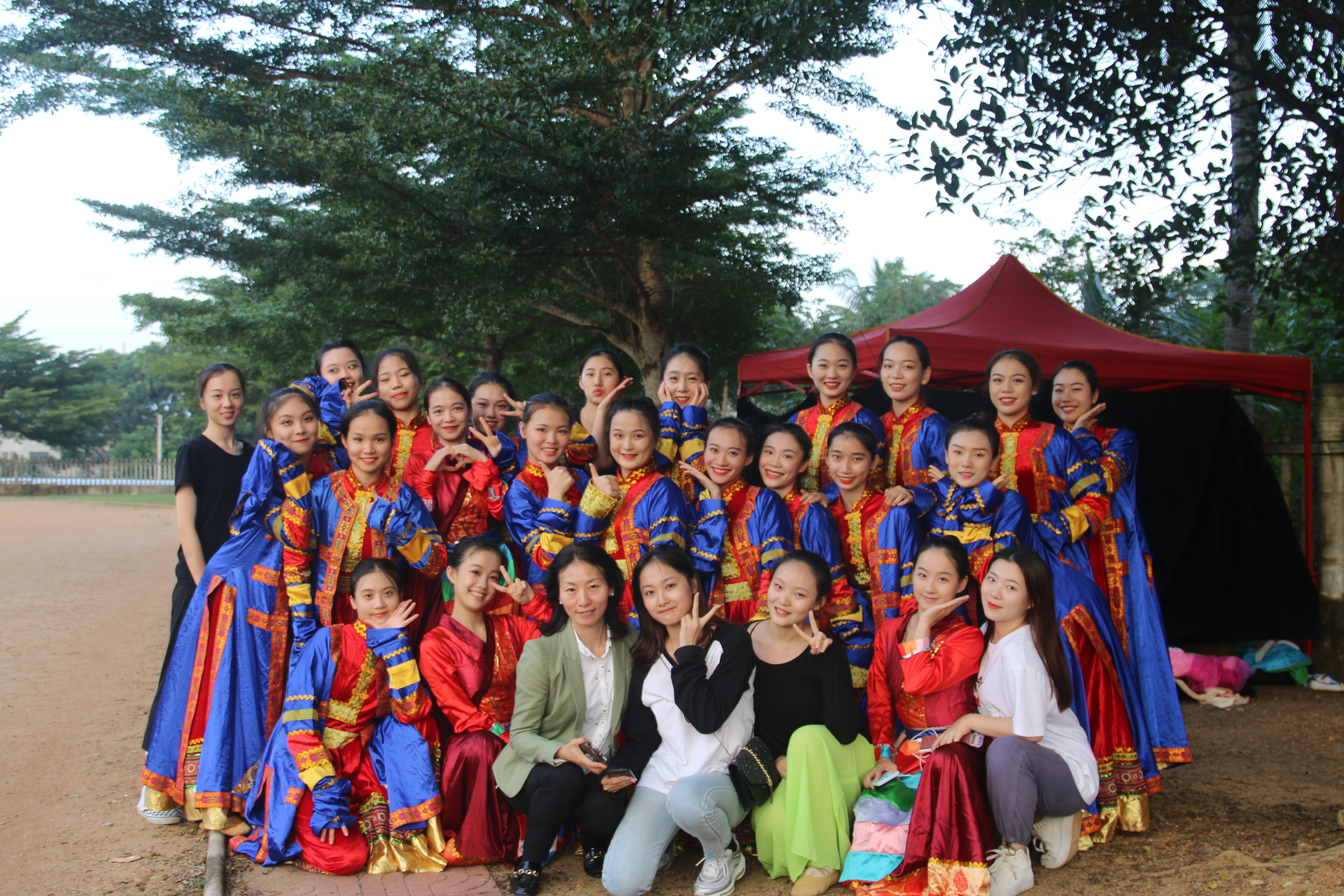 海南师范大学是全省唯一一所承接此项任务的高校,学校党委李红梅书记高度重视、大力支持,音乐学院全体师生齐心协力编排节目。节目形式多样,包括声乐、器乐、舞蹈、戏曲等类型。藏族群舞《戴天头》和蒙古族群舞《汗沁-贝勒格》展示了我国少数民族文化风采。女生独唱《美丽的心情》、《我爱你中国》等歌曲,曲调爽朗质朴,节奏自由舒展,抒发了演出团领略海南乡村田园风光后的好心情,曲意表达“对祖国大好河山的深切热爱和美好祝福”一次次引起在场观众的共鸣。源于海南本地的琼剧红色娘子军选段《常青之路》更是深入人心,赢得观众阵阵喝彩,将整场演出气氛推向高潮。