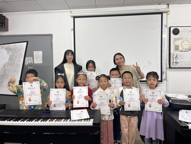 本次公益课堂为工会与音乐学院针对教工子女开展普及性音乐教育的首次尝试。分为钢琴集体课和竖笛集体课两种,同时各分为两个班开展,共计吸引了60位小朋友的加入。授课教师为音乐学院23级和24级音乐教育硕士:黄文熙、彭科文、张嘉妮、邱雨萱,指导教师为音乐学院教师张乐和刘婧。
