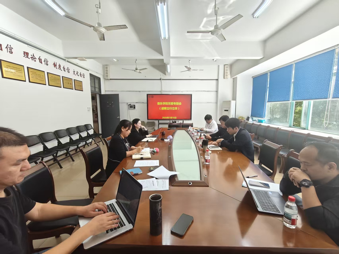 为坚决贯彻落实巡察整改工作要求,推动问题整改见底清零,2026年1月16日中午,音乐学院党委在学院305会议室召开巡察立行立改专题会议。会议由学院党委书记秦子文主持,党委领导班子全体成员参会,资产管理员陈晓丹列席。
