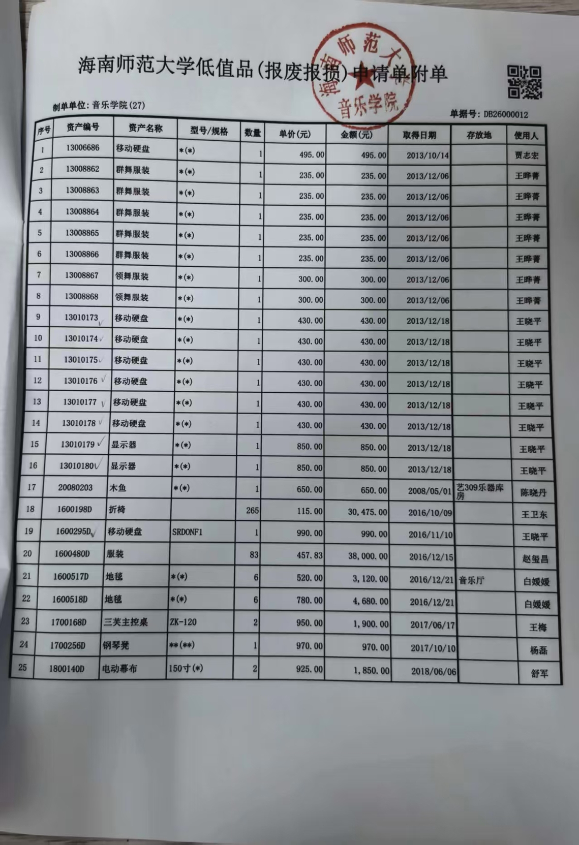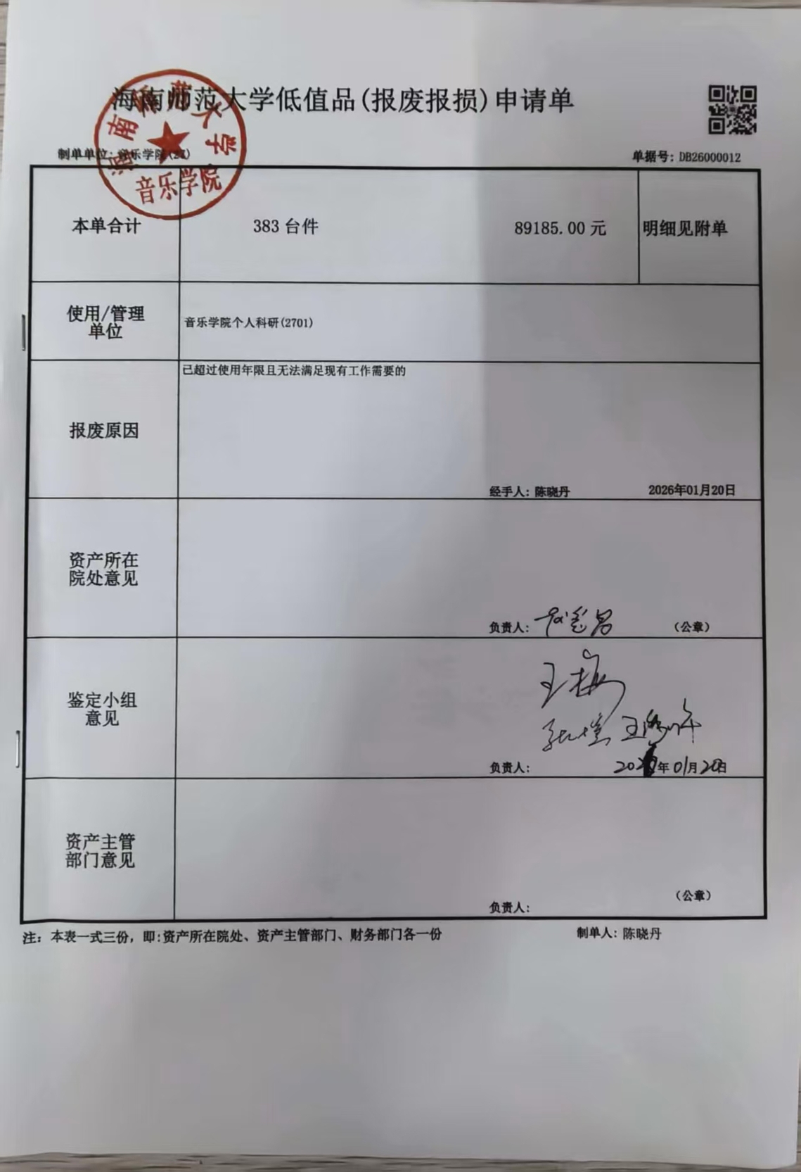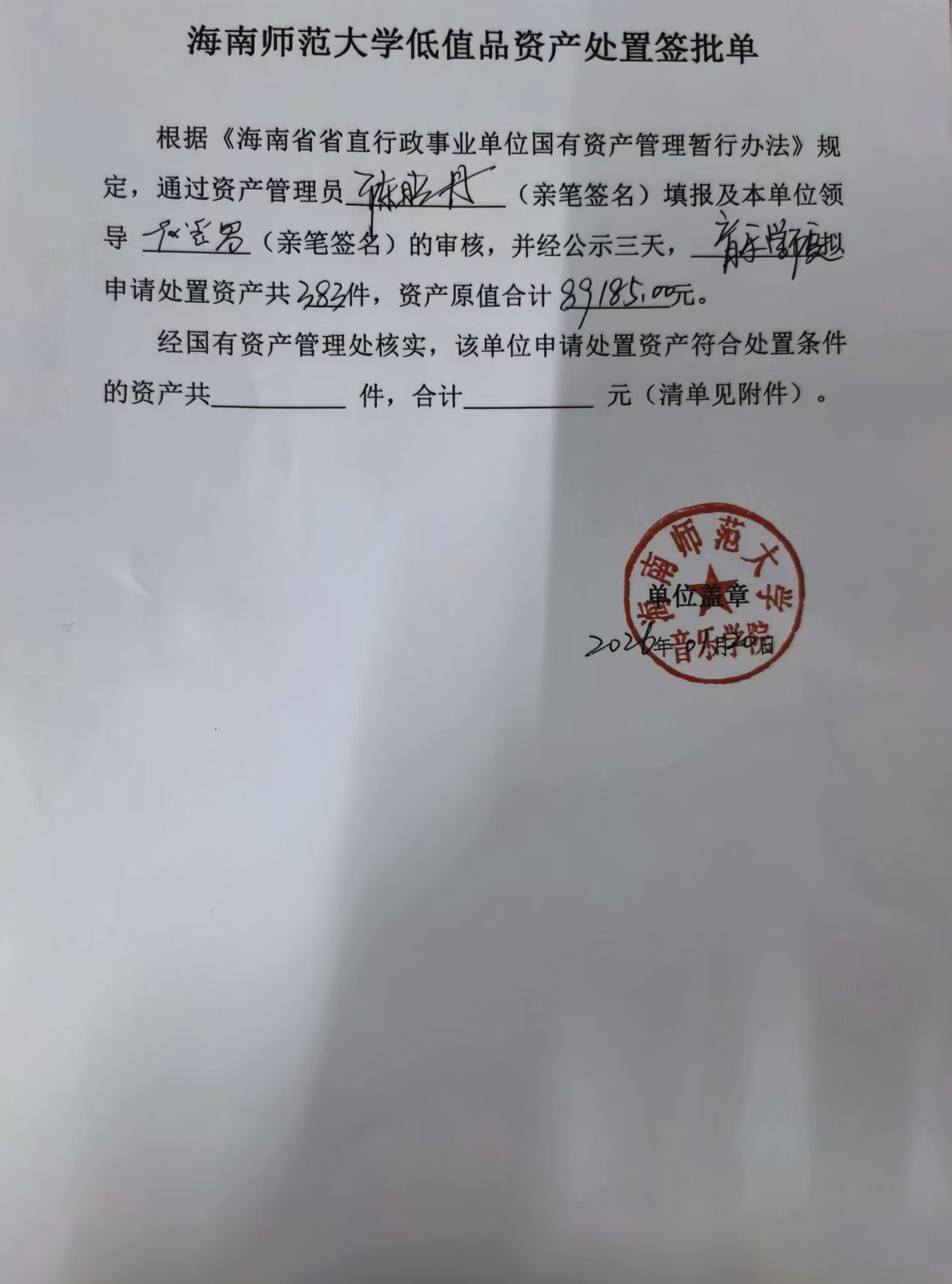 海南师范大学低值品(报废报损)申请单